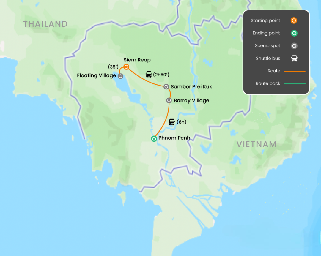 Our “Cambodia on Wheels 8 days” tour will give you an epic journey through Cambodia. Your trip will start in Siem Reap and end in Phnom Penh. You will ride Quad bike to explore Cambodia's country side, cycle to visit world famous majestic temples in Siem Reap, enjoy homestay in less known village, learn about Cambodia’s history, experience city nightlife in Phnom Penh, and immerse yourself in Khmer culture! How wonderful it is! Let’s join us to have your truly incredible vacation!