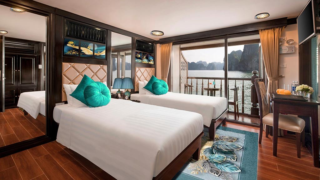 - The Premier suites come with private, spacious jacuzzi tubs, a rare feature among Halong Bay cruises.