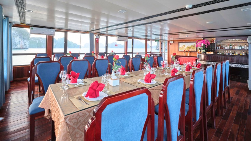 Along with a system of modern rooms, this budget boat offers guests new facilities to comfortably explore and experience exciting entertainment and party activities during their overnight time on board.