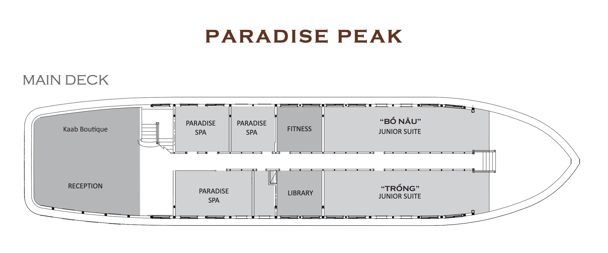Paradise Peak Cruise Halong offers 04 decks with a variety of amenities that bring a lot of convenience to passengers while staying onboard.