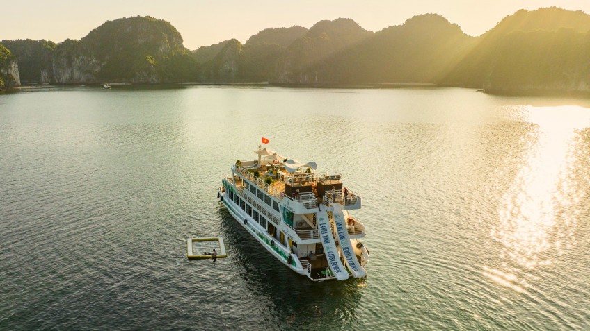 This is only one Halong Bay day cruise offering 3 decks and 2 waterslides.
