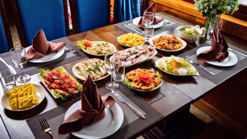 Halong Serenity Cruise features authentic Vietnamese cuisine, focusing on seafood.