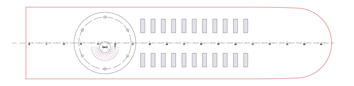 - The ship has a conventional design and has two shells.