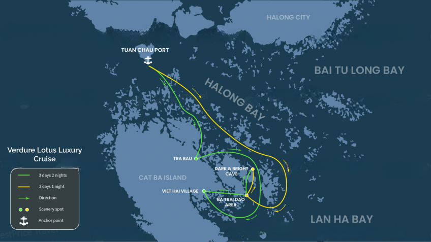 Between11:30and12:00, you will proceed to Tuan Chau Port, where you will board the Verdure Lotus Luxury Cruise and check in at the cruise lounge.