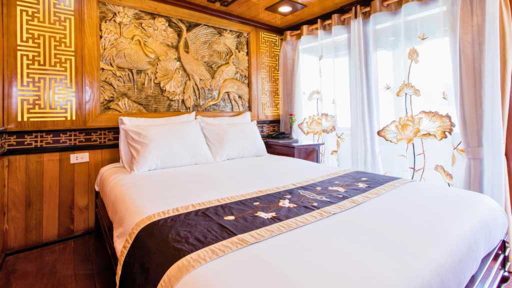 As you sail through the bay, this junk boat invites guests to explore iconic landmarks and engage in a variety of exciting outdoor activities to explore the beauty spots in Halong Bay and Lan Ha Bay.