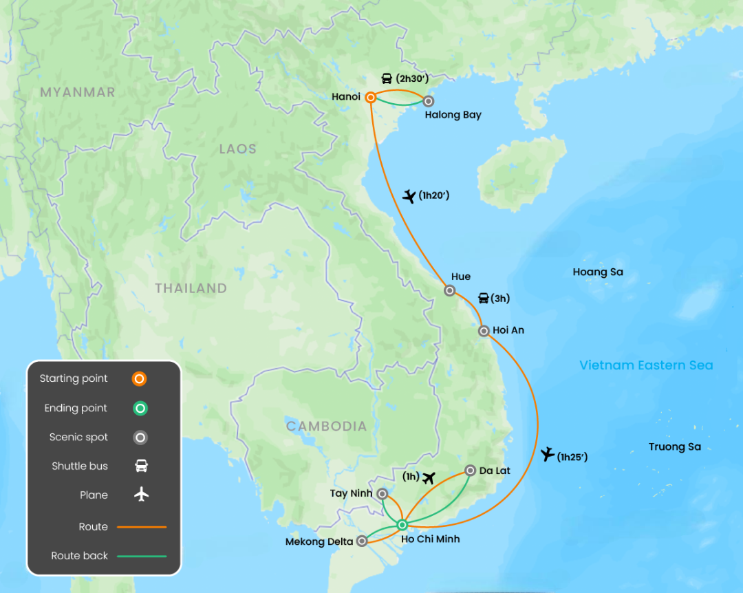 - 04 domestic flights: Hanoi - Danang, Danang - HCMC, HCMC - Dalat - HCMC (Economy class with 20 kg luggage included)