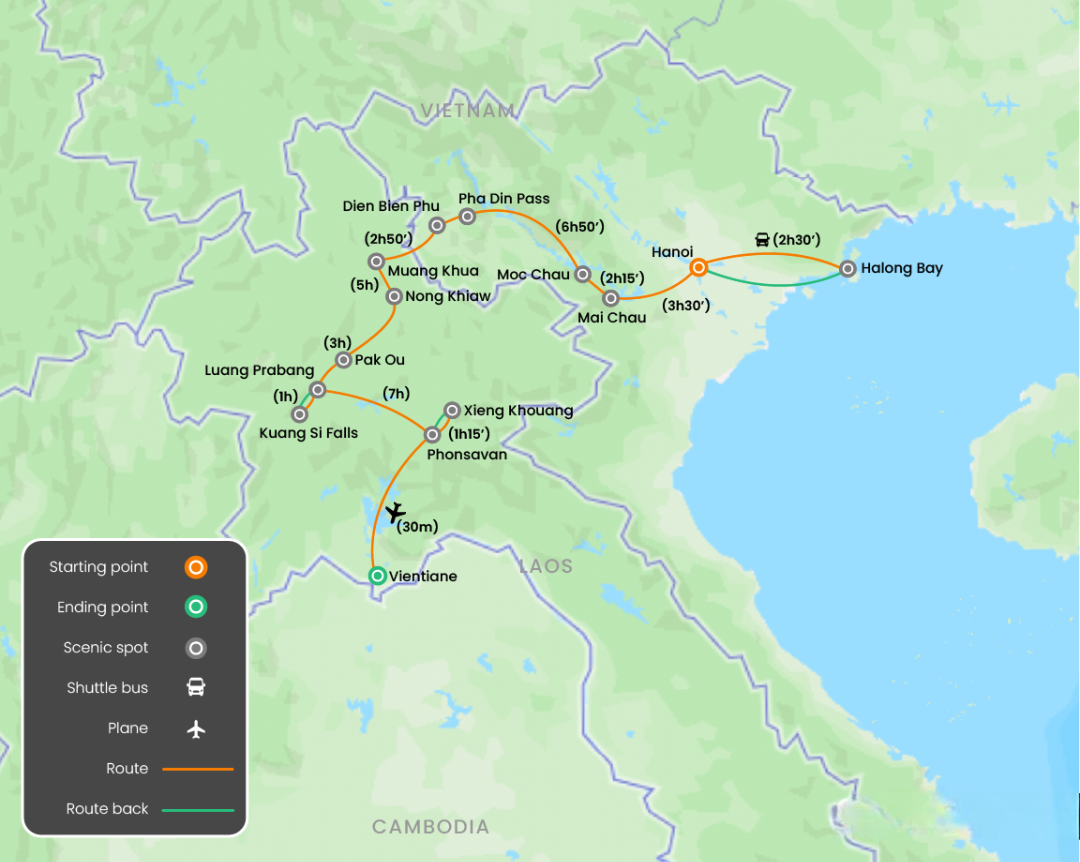Hanoi - Vientiane - Luang Prabang - Mai Chau - Halong Bay - Dien Bien Phu - Nong Khiaw - Xieng Khuang