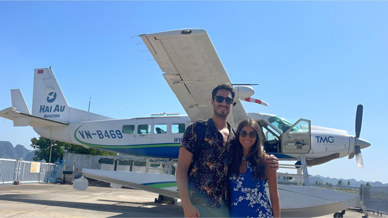 We had a cruise tour at Halong Bay. Also, we got there on a seaplane flight which is so exciting.