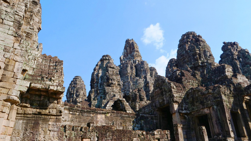 - Have a glimpse of the Bayon temple’s distinctive bas-relief carving architecture
