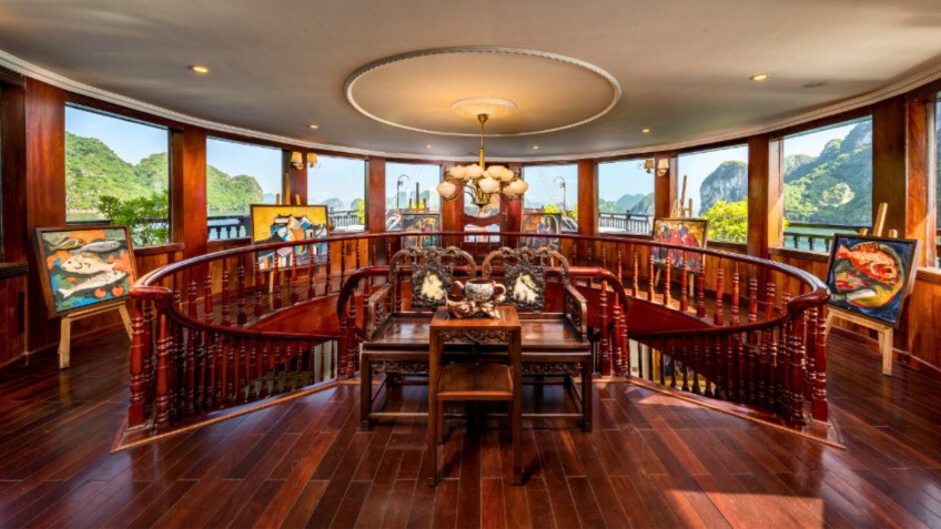 Emperor Cruise Halong Bay is not only a cruise carrying historical stories, but also a journey of art. This ship owns a valuable collection of paintings by artist Pham Luc, who is considered the Picasso of Vietnam, with a large number, including works from 1956 to the present.