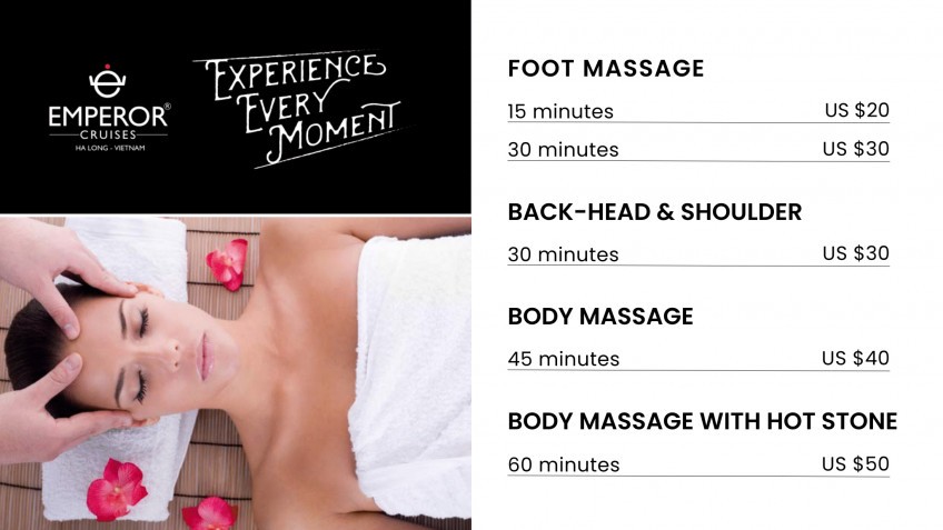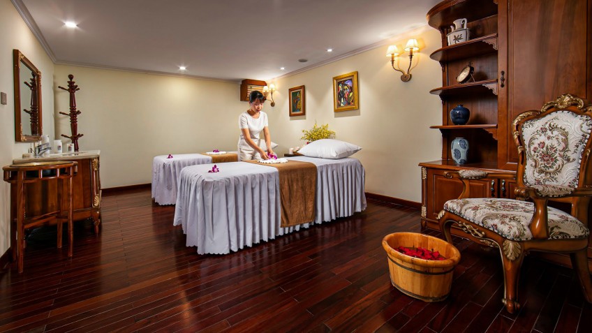 Inspired by Halong Bay and the royal spa heritage of the Nguyen Dynasty, this place offers a peaceful and luxurious spa and massage experience for passengers. The treatment combines modern therapies with local botanical products, helping guests balance energy and revive all their senses. Besides, this spa also has a sauna, which guests can enjoy with a cup of ginger or jasmine tea before or after their treatment.