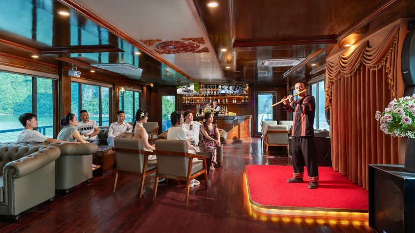 Then, return to Sonata Cruise for a Sunset Party, enjoying a live traditional music performance as the ship cruises back to Tuan Chau Harbor. You will have a great time chilling out with friends on the sundeck.