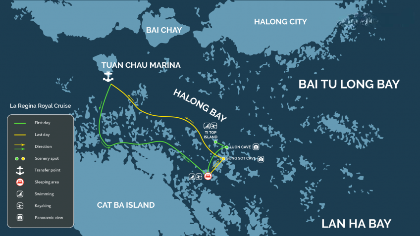 If you have organized your own transportation and will be departing from the 1st floor Halong International Cruise Port h?t nhé, you must arrive at the designated waiting station, which is located at No.9, Halong International Cruise Port. Please aim to arrive around 11:30to ensure a timely departure for the La Regina Royal Cruise.