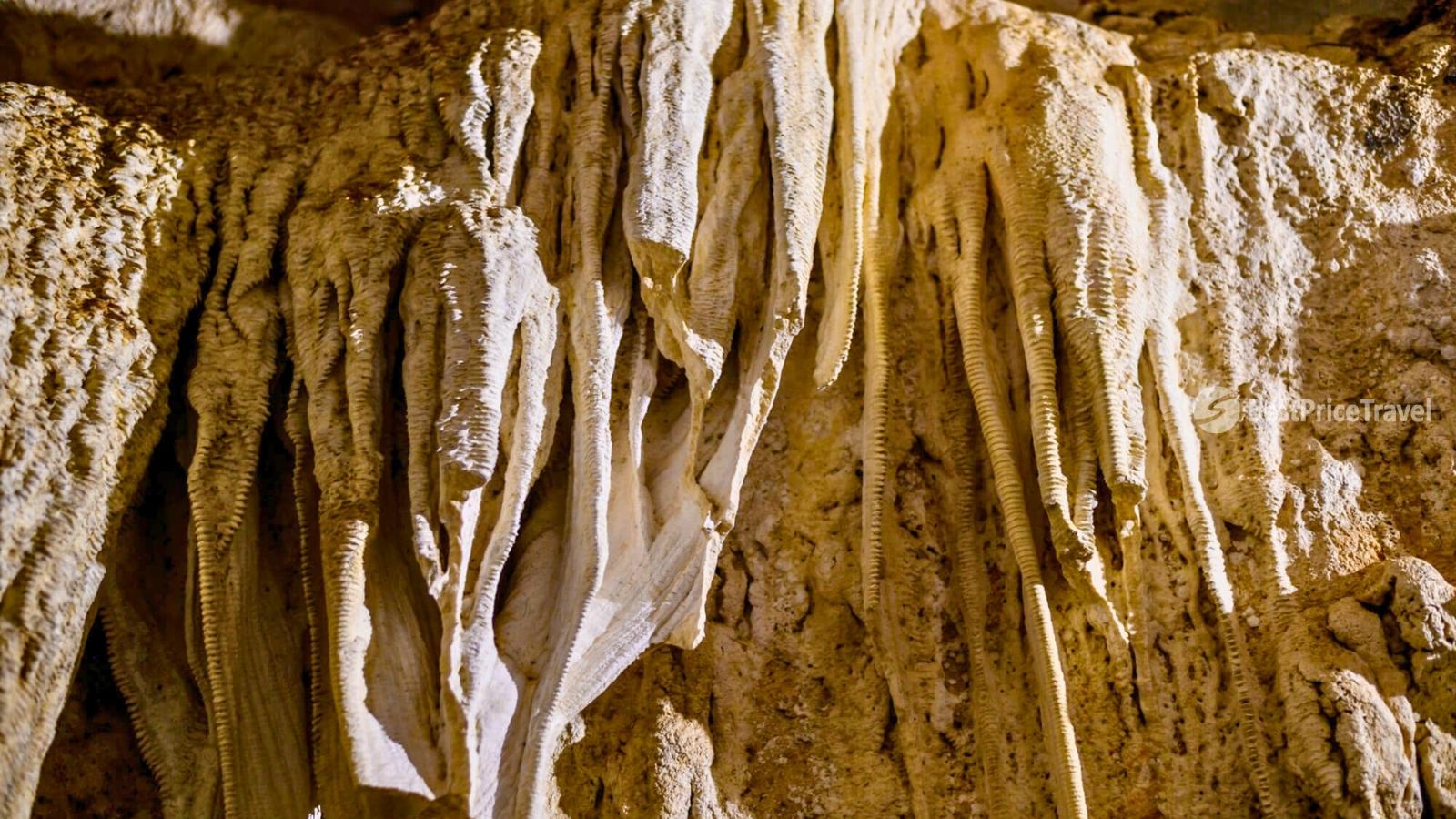 Trung Trang Cave is 300m long and a bit narrow but is one of the most magnificent caves in the bay, with layers of stalactites in many different shapes, reaching close to the footpath and covering the entire cave ceiling.