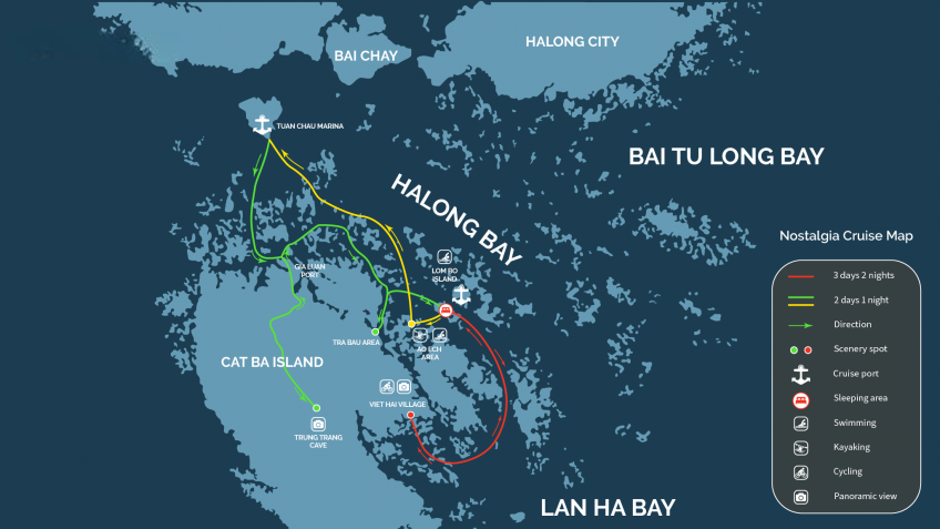 As a small boat with a capacity of only 20-25 passengers and owning the most special itinerary in the bay, Nostalgia Cruise assuredly brings passengers the unique experience of the hidden poetic beauty of Lan Ha Bay and Cat Ba Island.
