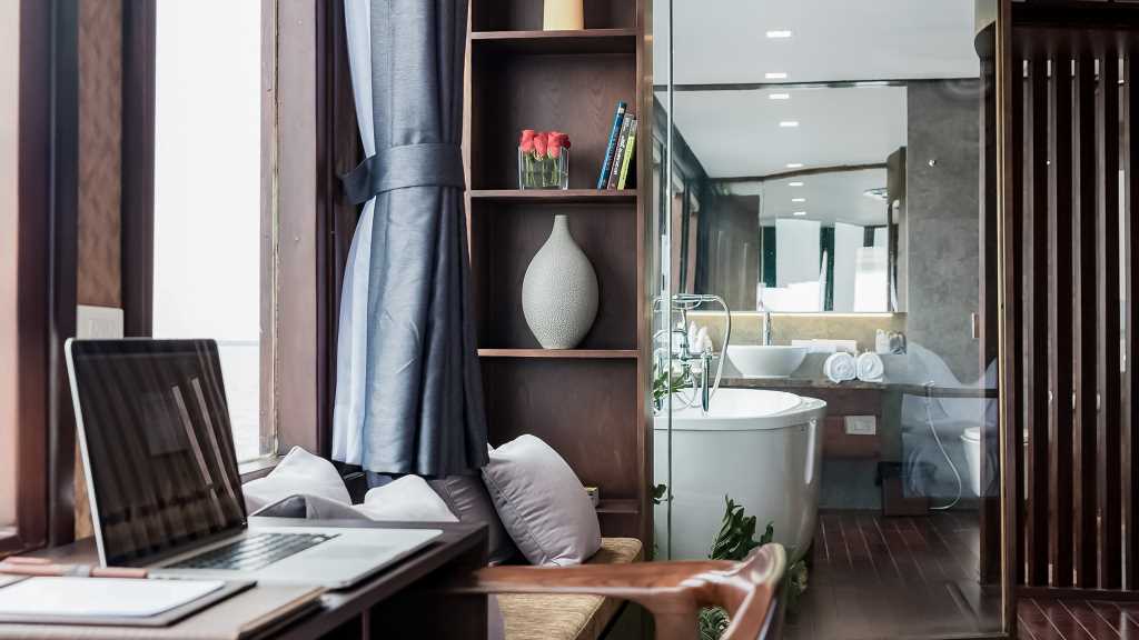 All the cabins of Orchid Classic Cruise Halong Bay offer both a private bathtub and a standing shower with stunning views of the bay so you can enjoy your amazing trip.