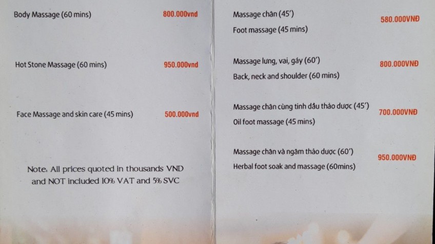 - Spa and massage service.