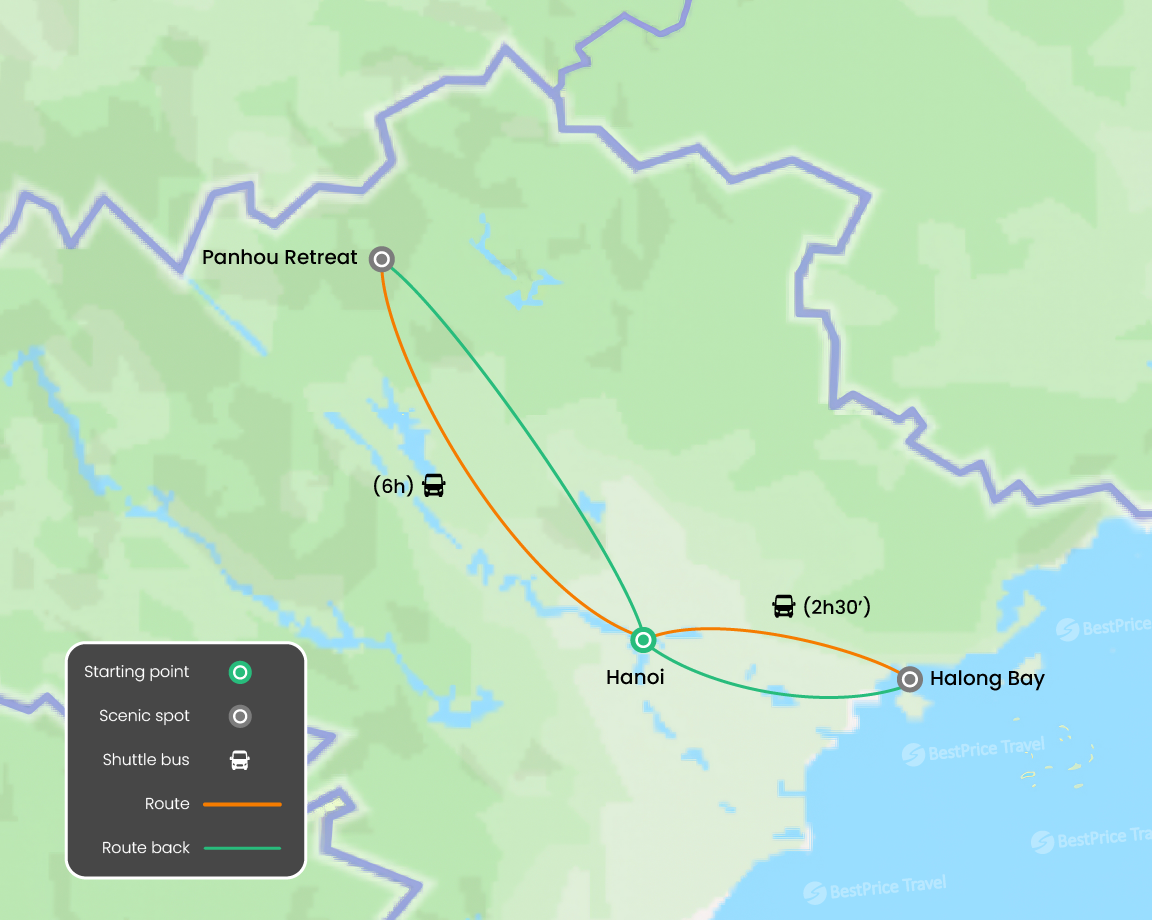 Hotel (3 nights), Panhou Retreat (2 nights), Halong Bay Cruise (1 night)
