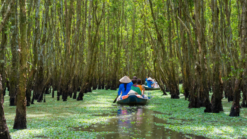 Then, you will participate in an engaging 3-hour cruising & walking trip in the tranquil Mekong Delta. You will explore The Mekong River's small canals on a rowing sampan and witness its lush and fresh riverbanks.